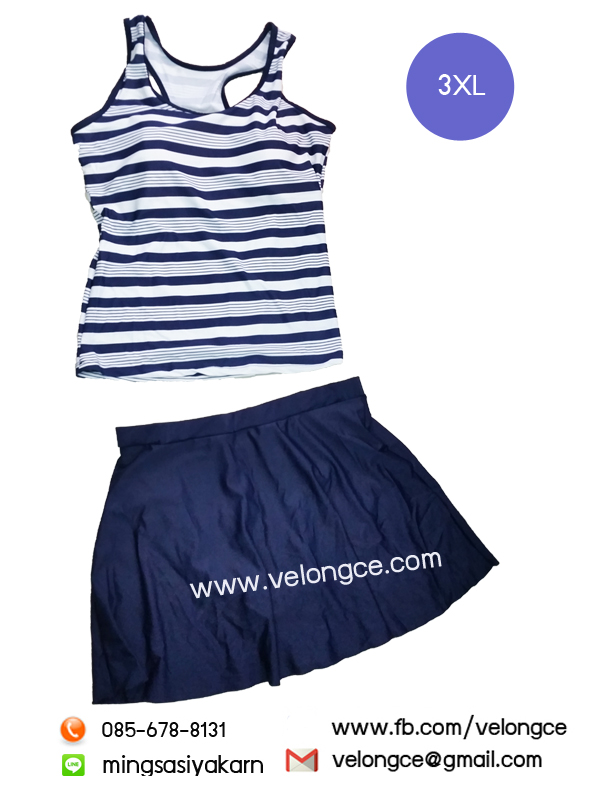 No.21953X ชุดว่ายน้ำ 2 ชิ้น Size 3XL เสื้อกล้ามลายทรงสปอร์ต หลังสปอร์ต คู่กระโปรงสีพื้น