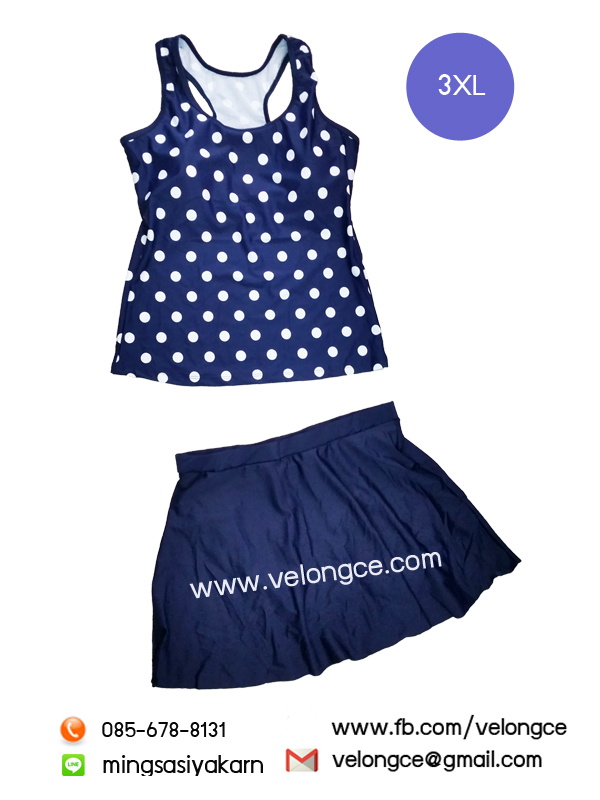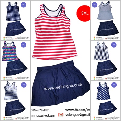 ชุดว่ายน้ำ 2 ชิ้น Size 3XL เสื้อกล้ามลายทรงสปอร์ต หลังสปอร์ต คู่กระโปรงสีพื้น
