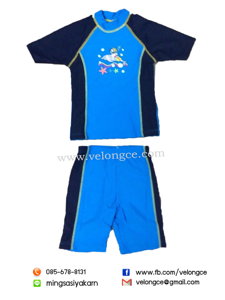 ชุดว่ายน้ำเด็ก สองชิ้น แขนสั้น ขาสั้น