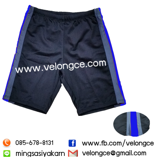 GKB003 กางเกงว่ายน้ำเด็ก แถบข้างสีเทาสลับสี ขายาว 3 ส่วน Size 6-8-10-12-14-16
