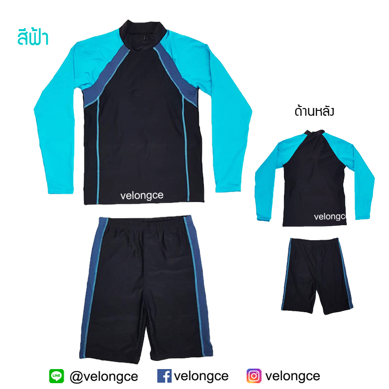 รุ่น 5301 ชุดว่ายน้ำแขนยาว ขาสั้น 2 ชิ้น ใส่ได้ทุกเพศ size L-XL-XXL-3XL