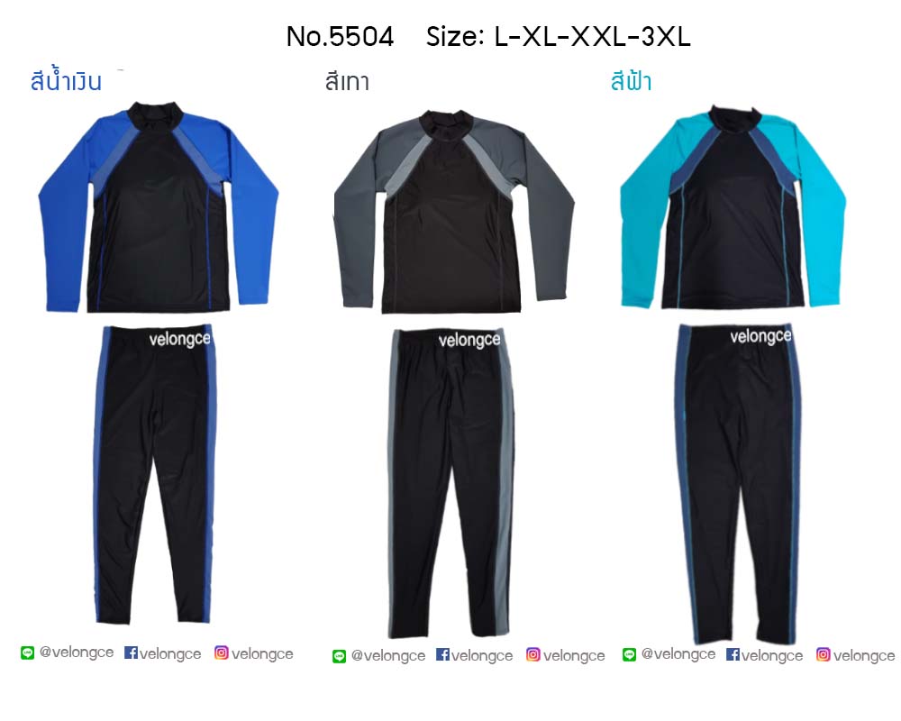 รุ่น 5504 ชุดว่ายน้ำ 2 ชิ้น แขนยาว ขายาว ใส่ได้ทุกเพศ size L-XL-XXL-3XL