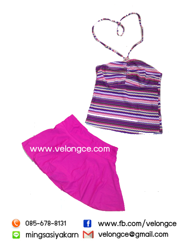 เสื้อเกาะอกผูกคอลายคู่กระโปรงสีพื้น