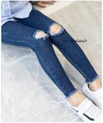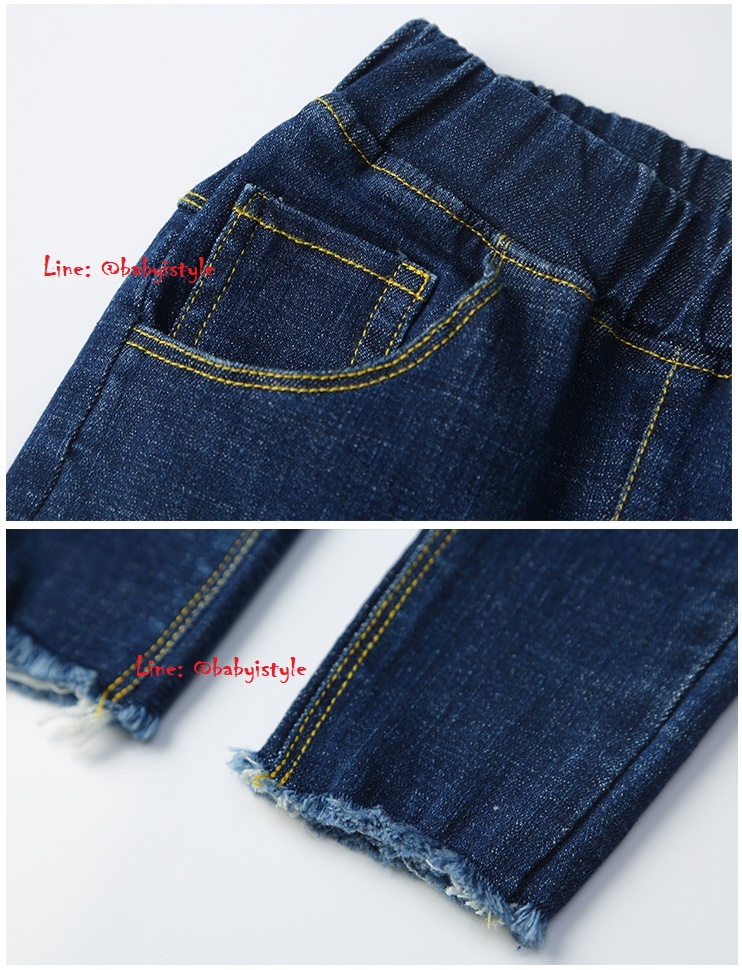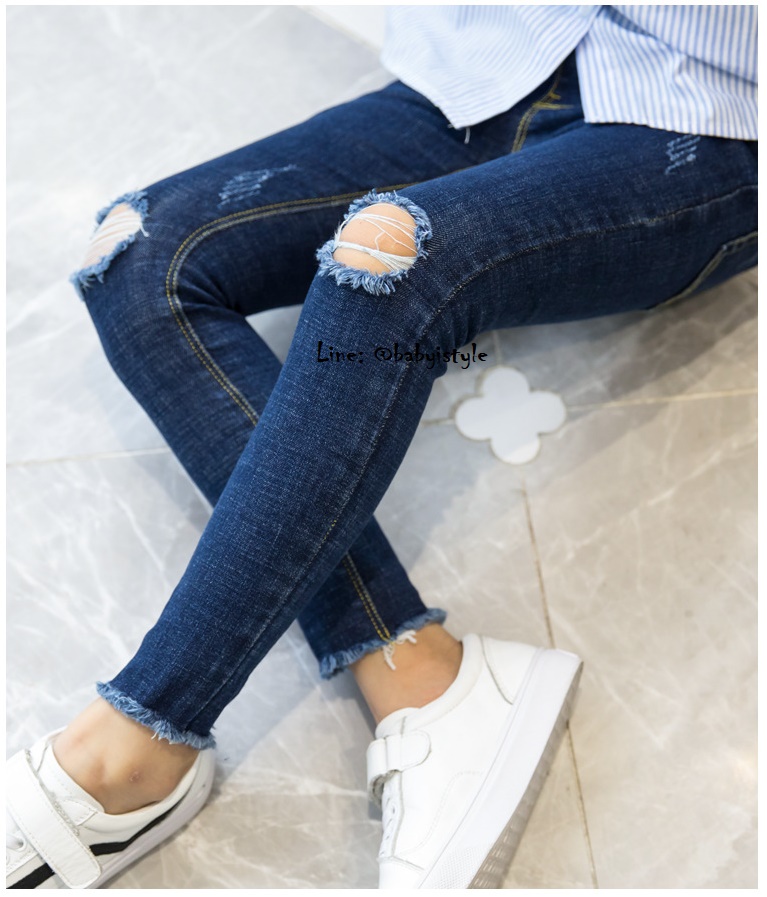 เด็กโต-กางเกงยีนส์ขายาวเดฟแต่งขาดๆ เซอร์ๆ เอวยางยืด มีกระเป๋าหลัง งานสวยเก๋ ไซส์ 140/150/160