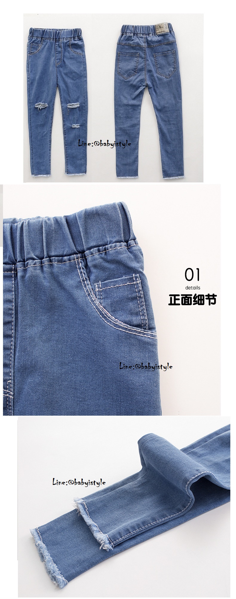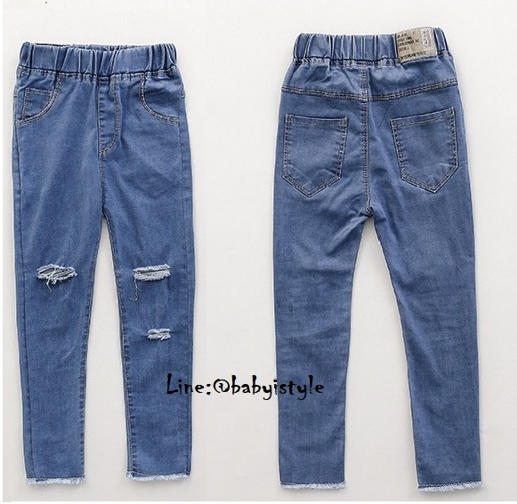 เด็กโต-กางเกงยีนส์เดนิม(ผ้านิ่ม) ขายาวเดฟแต่งขาดๆ เซอร์ๆ เอวยางยืด มีกระเป๋าหลัง งานสวยเก๋
