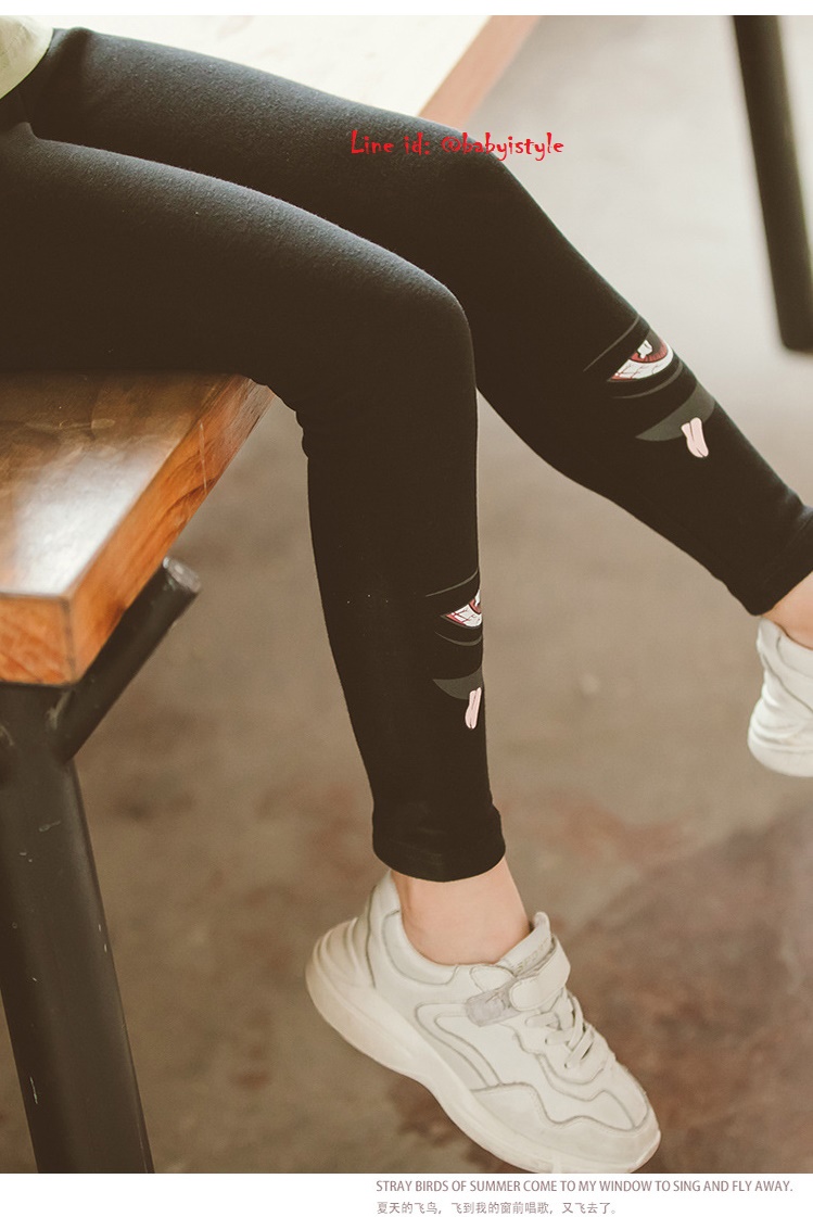 เด็กโต-เลกกิ้งขายาวสีดำ สกรีนรูปดวงตา เอวยางยืด ผ้ายืดหยุ่นได้ดี สวยเก๋น่ารัก