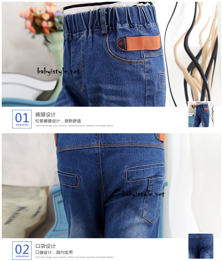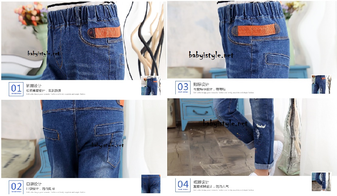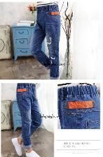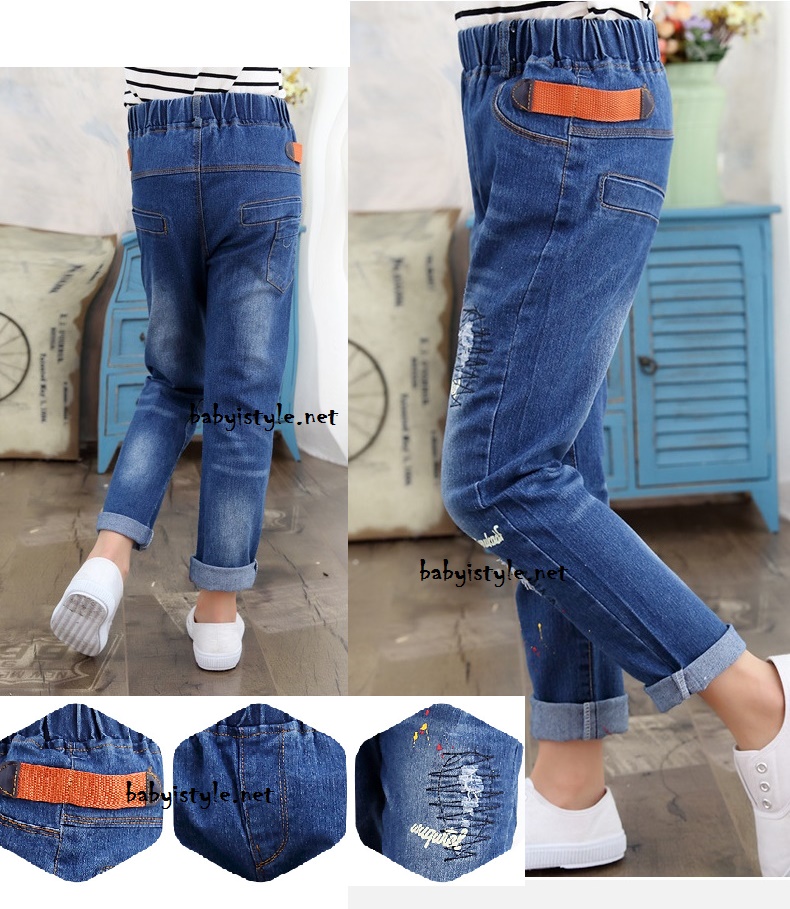 เด็กโต-กางเกงยีนส์ฟอกขายาวลายกราฟฟิคสี แต่งมุด เอวยางยืด ผ้านุ่มงานสวยเท่ห์ๆ ไซส์ 140/150/160