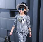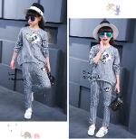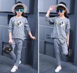 *Saleเด็กโต-ชุด2ชิ้นเสื้อสีเทาลายริ้วติดเหลื่อมรูปหัวใจ+กางเกงขายาวริ้วสีเทาไซส์130/140 รหัส KKK606A