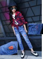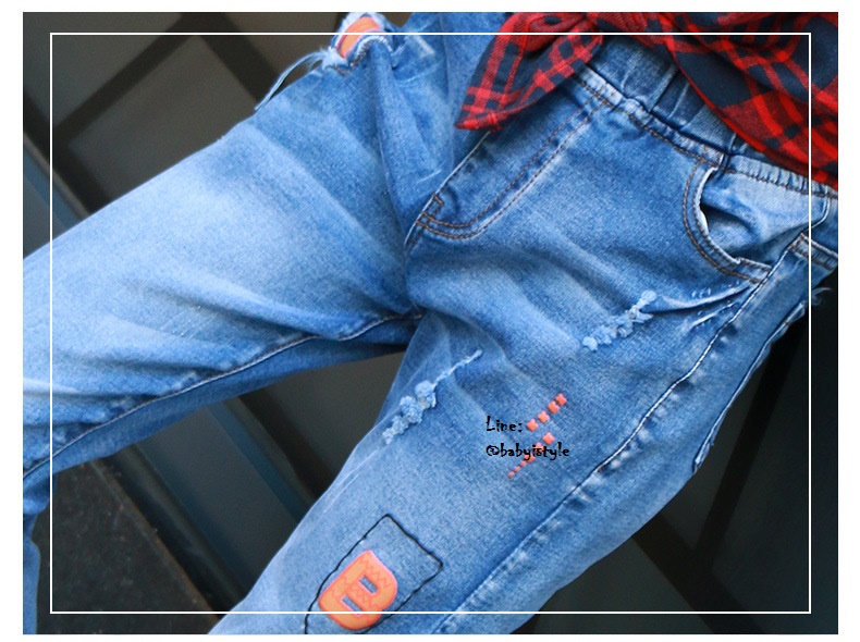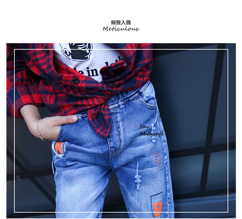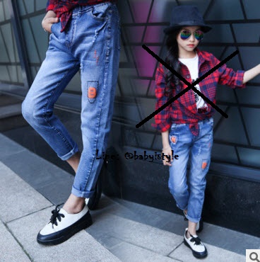 เด็กโต-กางเกงยีนส์ฟอกขายาวแต่งขาดๆ ปัก N B