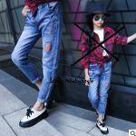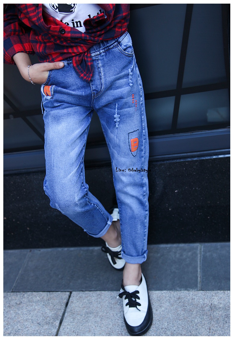 เด็กโต-กางเกงยีนส์ฟอกขายาวแต่งขาดๆ ปัก N B ขอบเอวยางยืด มีกระเป๋าหน้า-หลัง งานสวยน่ารัก ไซส์ 140/150/160