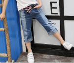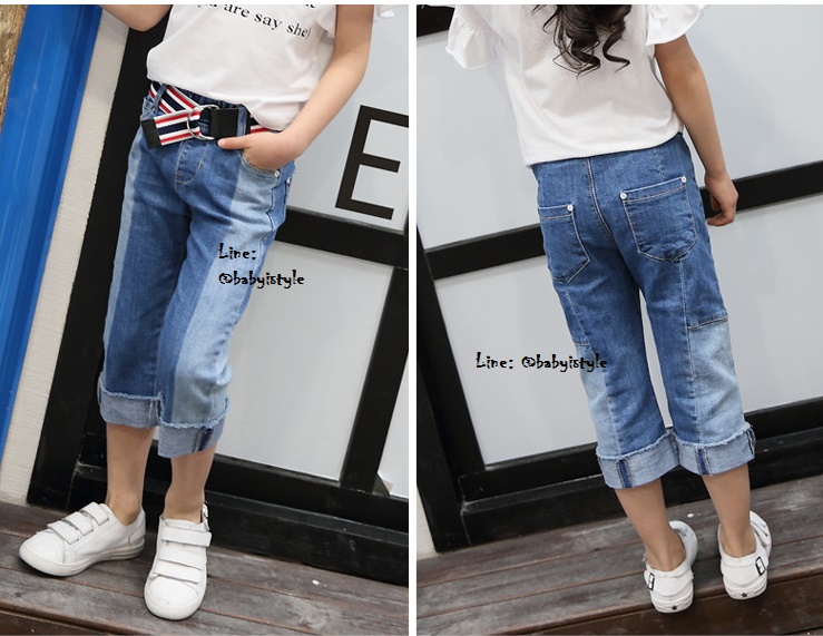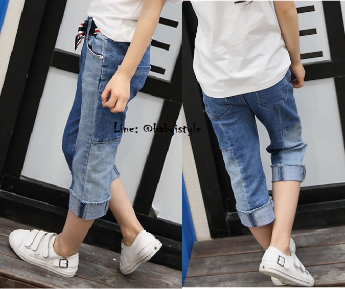 เด็กโต-กางเกงยีนส์สีทูโทน 3 ส่วนพับขาเบิ้ล(ไม่มีเข็มขัด) ขอบเอวยางยืด มีกระเป๋าหลัง งานสวยน่ารัก ไซส์ 140/150/160