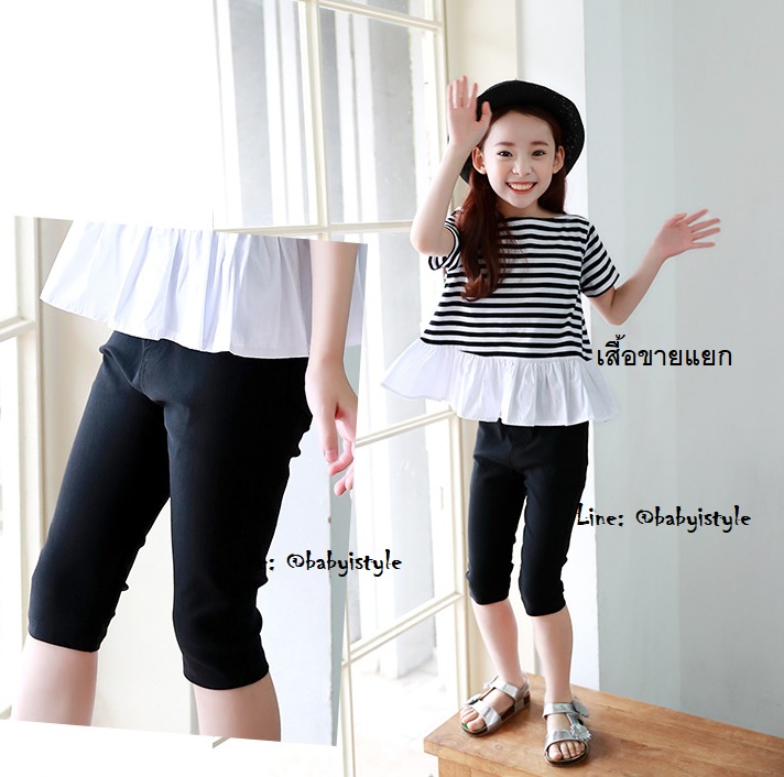 เด็กโต-กางเกงขา 3 ส่วนสีดำ ขอบเอวยางยืด มีกระเป๋าหน้า-หลัง ผ้ายืดหยุ่นได้มาก งานสวยน่ารัก ไซส์ 140/150/160