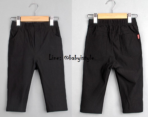เด็กโต-กางเกงขา 3 ส่วนสีดำ ขอบเอวยางยืด มีกระเป๋าหน้า-หลัง