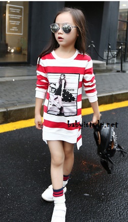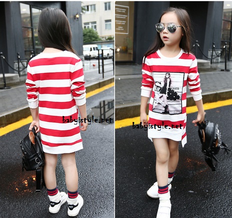 เด็กโต-เดรสแขนยาวลายริ้วสีแดง ลายสาวเปรี้ยว ชายผ่าข้าง ผ้านุ่ม งานสวยเก๋ค่ะ