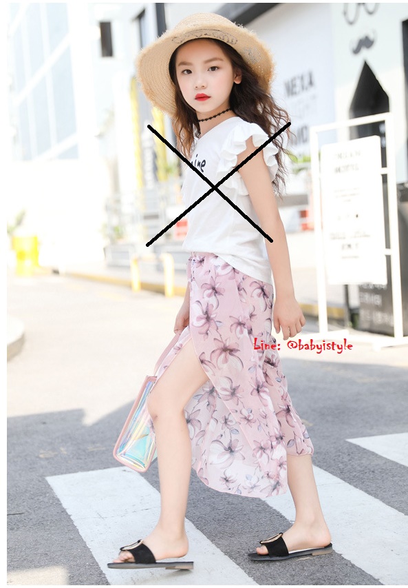 เด็กโต-กางเกงขายาวผ่าข้างสีชมพูลายFlower มีซับในสั้น เอวยางยืด ผ้าพริ้วชีฟอง งานสวยน่ารัก ไซส์ 140/150/160