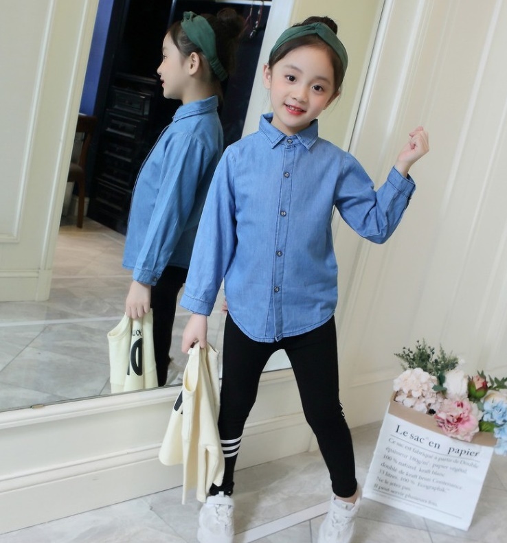 *Salesเด็กโต-ชุด3ชิ้นเสื้อแขน3ส่วนสีครีม+เสื้อเชิ้ตยีนส์+เลกกิ้งขายาวสีดำ ไซส์ 140/150 รหัส KKL036A