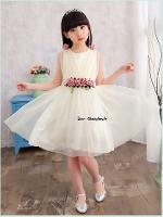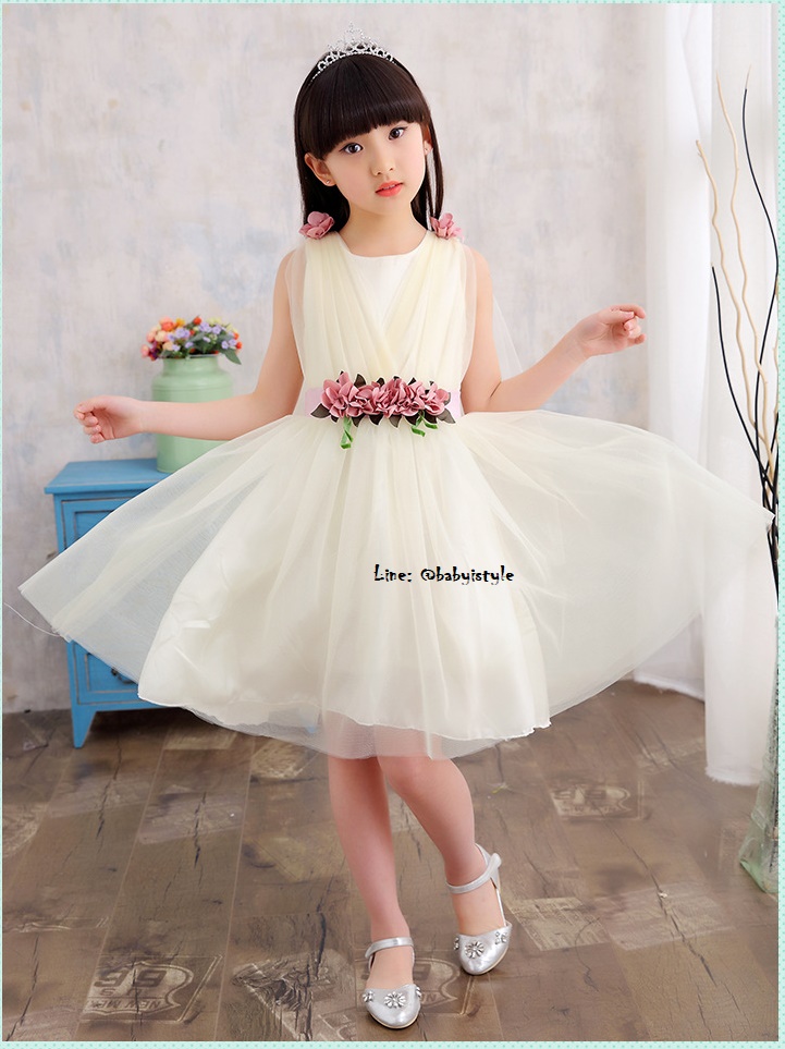 เด็กโต-เดรสออกงานแขนกุดสีครีมเอวแต่งดอกไม้สีชมพูผูกริบบิ้นหลัง  ราคา 590 พิเศษ 410 บาท*ไม่รวมค่าส่ง