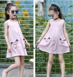 *Sales เด็กโต-เดรสแขนกุดสีชมพูทรงเอ มีกระเป๋าหน้าแมวเหมียว ติดกระดุมหลังไซส์ 140/160 รหัส KKK875A