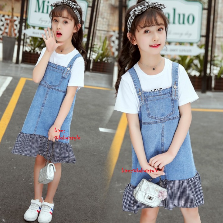 +เอี๊ยมกระโปรงยีนส์ชายต่อผ้าสก็อตสีดำ มีกระเป๋า สายเอี๊ยมแบบติดกระดุมได้ 2 ตำแหน่ง งานสวยน่ารัก
