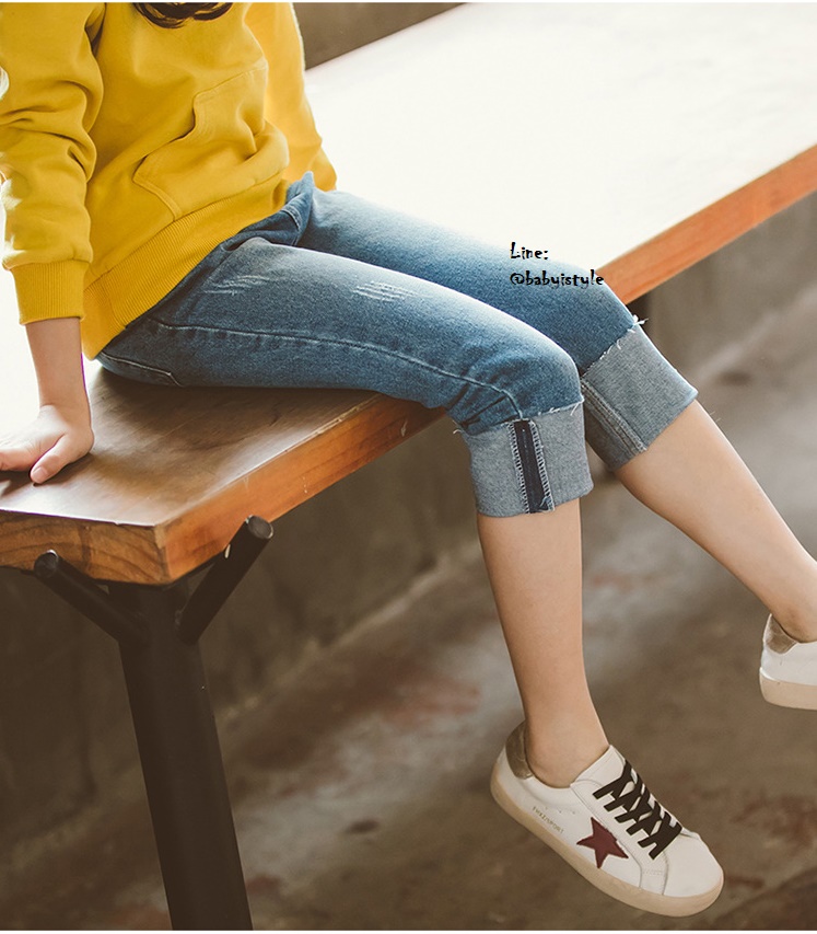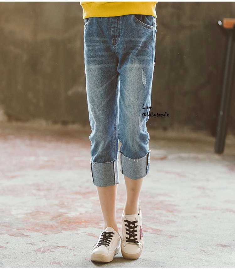 เด็กโต-กางเกงยีนส์ฟอกขา 4 ส่วนพับเบิ้ลชายปล่อย เอวยางยืด มีกระเป๋าหน้า-หลัง งานสวยเก๋ (ไม่รวมเสื้อ) ไซส์ 140/150/160/170