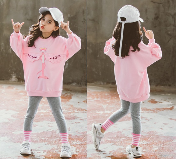 เด็กโต-ชุด2ชิ้นเสื้อแขนยาวจั๊มพ์สีชมพูPink Pantherปีก3D+เลกกิ้งขายาวสีเทา ตรงจั๊มพ์ลายริ้วชมพู เอวยางยืด งานสวยเท่ห์ค่ะ ไซส์140/150/160