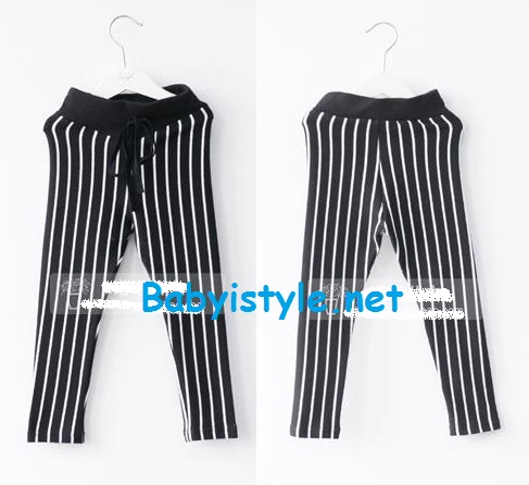 เลกกิ้งขายาวลายทางสีดำ ผ้ายืดได้น้อยค่ะ เหมาะกับน้องผอมสูง ขาเรียวเล็กค่ะ