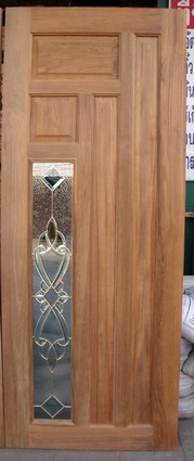 ประตู ไม้สักAB ขนาด80x200ซม. กระจกแสตนกลาสมารีน่าเขียว (ราคาต่อบาน)