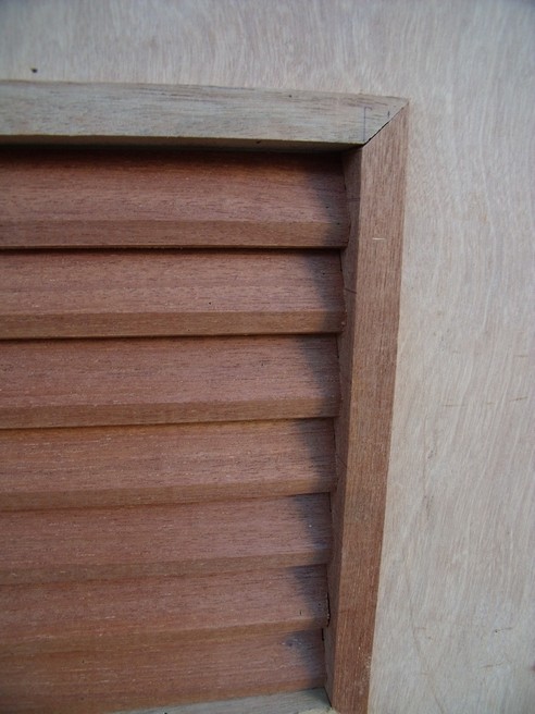 ไม้อัดยางภายนอก วัดขอบบน 15ซม. ระยะเกล็ดอยู่บริเวณกลางบาน โดยเสริมโครงไม้จริงภายในและเกล็ดผลิตจากไม้จริงเช่นกัน สำหรับประตูห้องน้ำ ห้องเก็บของ เป็นต้น นอกจากนี้ยังสามารถเจาะทั้งเกล็ดแลกระจกภายในบานเดียวกันได้อีกด้วย