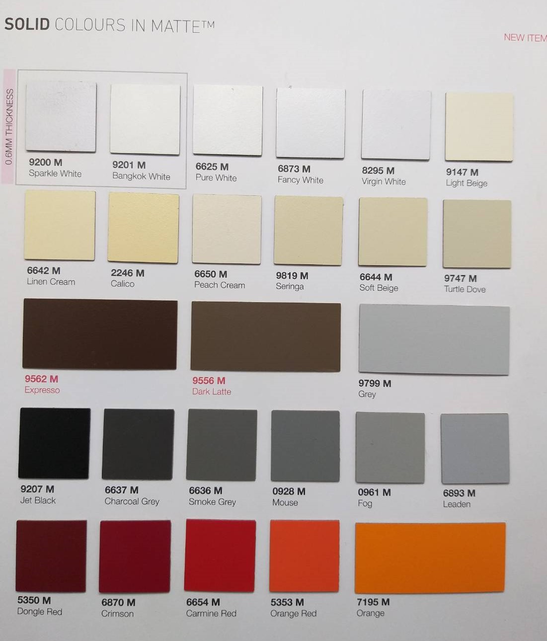 แผ่นลามิเนต ยี่ห้อ TD สีพื้นหลากหลายสี ขนาด120x240ซม. ผิว M