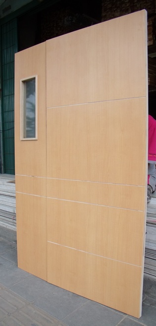 ประตูลามิเนทแท้โมเดิร์น024 ขนาด 80x200ซม. กระจกลายผ้า+คิ้วเสริม