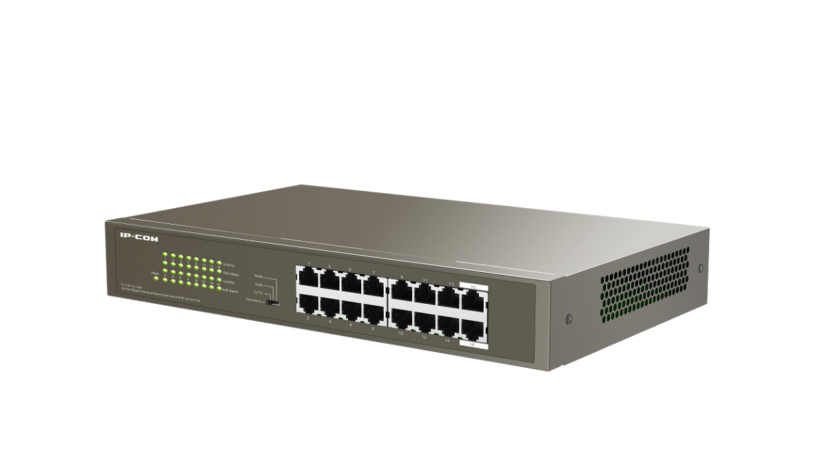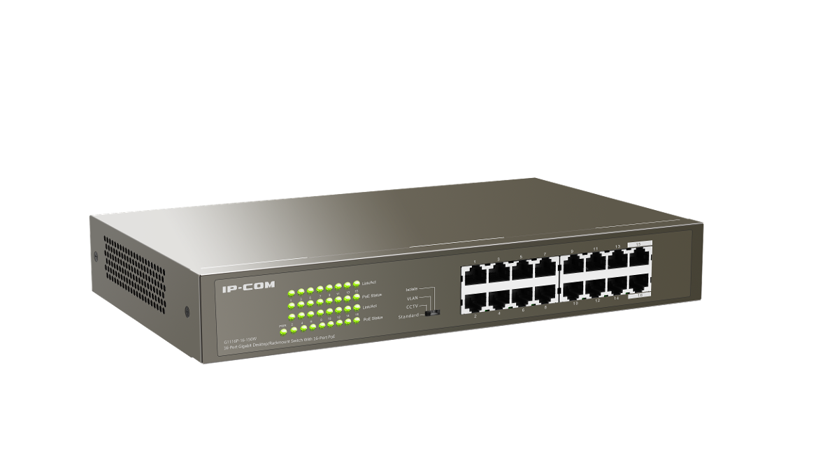 SWITCH (สวิตซ์) IP-COM G1116P-16-150W 16-Port Gigabit Desktop/Rackmount Switch With 16-Port PoE, Power Budget 135W (รับประกัน 3 ปี)
