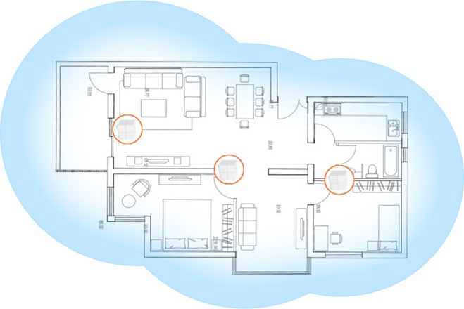 - สัญญาณครอบคลุมพื้นที่ได้สูงสุดถึง 6000 ตารางฟุต (550 ตารางเมตร)