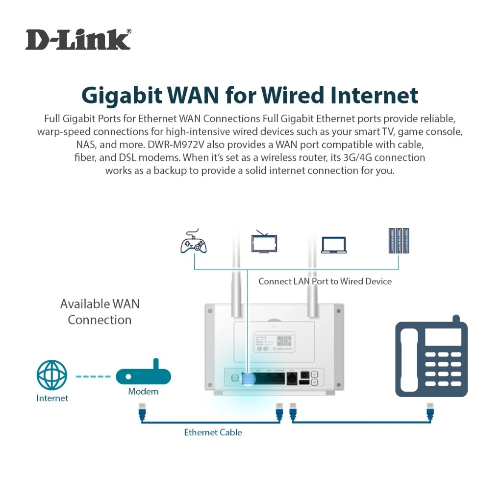 4G Router (เราเตอร์ซิม) D-LINK DWR-M972V Cat7 AC1200 Wireless Dual Band Gigabit Router, Downlink: Up to 300 Mbps / Uplink: Up to 100 Mbps (สินค้ารับประกัน 3 ปี)