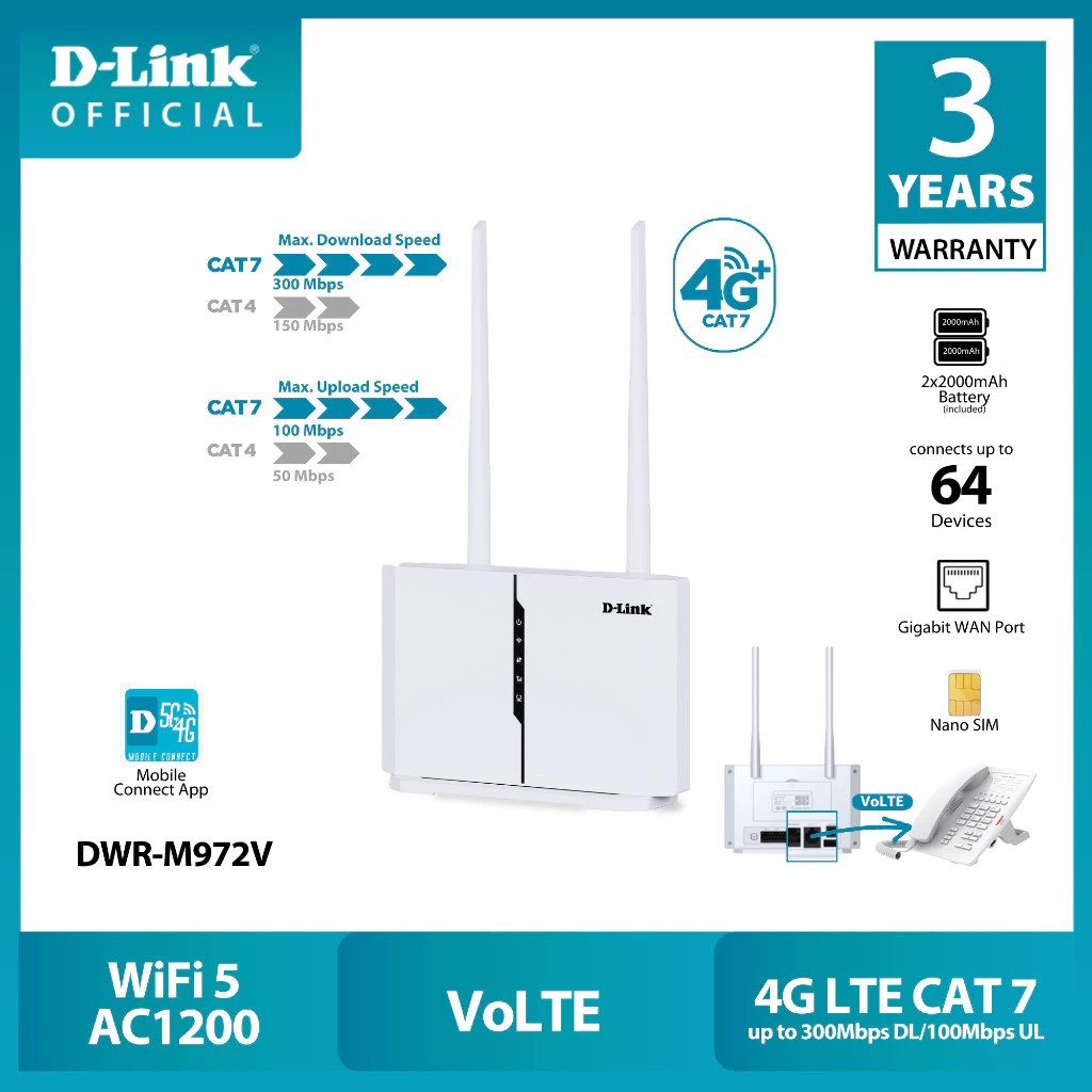 DWR-M972V : LTE CAT7 WiFi AC1200 Router