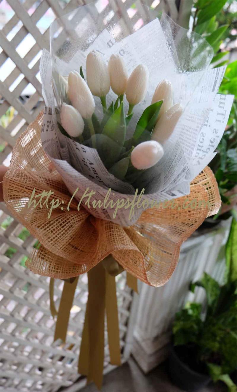 ช่อดอกทิวลิปสีขาว จำนวน 10 ดอก จัดช่อโทนสีขาวน้ำตาล