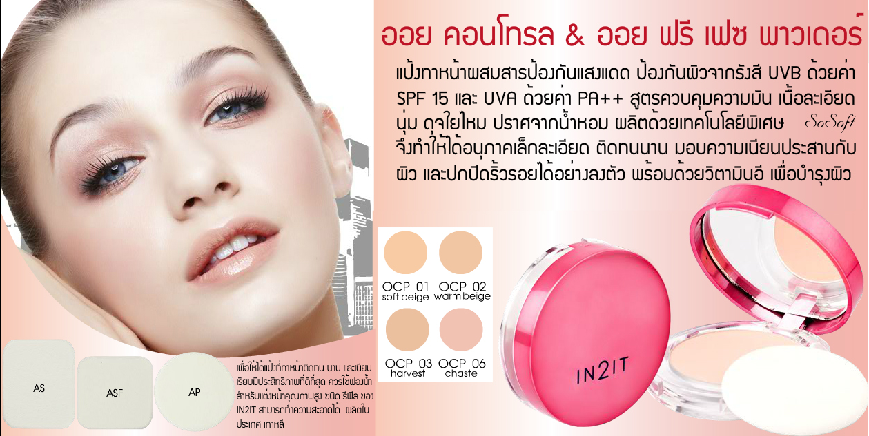 แป้งทาหน้า ผสมสารป้องกันแสงแดด ป้องกันผิวจากรังสี UVB ด้วย SPF15 และ UVA ด้วยค่า PA++ สูตรควบคุมความมันบนใบหน้า เนื้อละเอียด นุ่ม ดุจใยไหม ปราศจากน้ำหอม ผลิตด้วยเทคโนโลยีพิเศษ SoSoft จึงทำให้ได้อนุภาคเล็กละเอียด ติดทนนาน มอบความเนียน ประสานกับผิวและปกปิดริ้วรอยได้อย่างลงตัว พร้อมด้วย วิตามินอี เพื่อบำรุงผิว