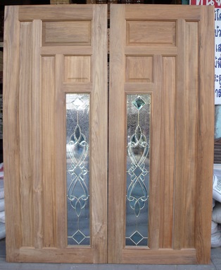 ผลิตโดยลูกฟักไม้ใช้ไม้ชิ้นเดียวไม่มีรอยต่อไม้ ทำให้บริเวณลูกฟักไม่บิด หดตัว ส่วนกระจกนั้นเป็นกระจกนิรภัยโดยภายในเป็นเส้นทองเหลือง ใช้เป็นประตูหน้าบ้านเหมาะสมมากๆ ทางร้านยังมีแบบให้เลือกสรรอีกมากมาย