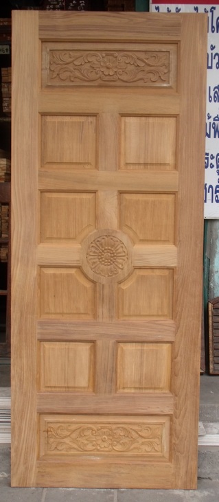 ประตู ไม้สักเกรดA 909 ขนาด80x200ซม.ลูกฟัก+แกะลายใช้ไม้ชิ้นเดียว