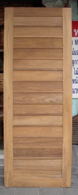 ผลิตจากไม้สักเกรดA คือไม่มีตา รูมอด แต่สีไม้จะไม่เหมือนกันทั้งบาน เนื่องจากไม้ที่นำมาผลิตไม่ได้นำมาจากไม้ต้นเดียวกัน บริเวณลูกฟักและลายแกะนั้นผลิตจากไม้ชิ้นเดียวไม่รอยต่อ บานหนา35มิลผลิตได้ตามขนาดที่ลูกค้าต้องการ