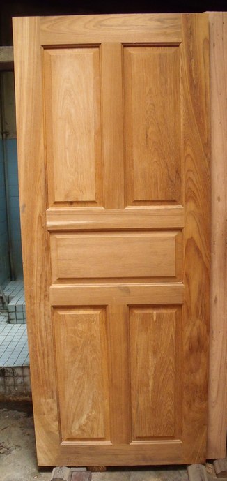 ประตู ไม้สักลาย 5ฟักตรงเกรดAB ขนาด 80x200ซม.ผลิตตามแบบที่ต้องการ ใช้ได้ทั้งภายในภายนอกทำสีได้ทุกชนิด