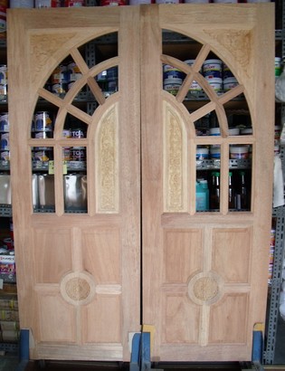 ผลิตจากไม้เต็งแดง 70%ผสมกับไม้สยาหินแดง 30% บานคู่กระจก ส่วนใหญ่จะติดตั้งเป็นบานคู่หน้าบาน โดยใบปัจจุบันจะนิยมติดตั้งชั้น2 ความลงตัวของลายแกะทั้งด้านบน ตรงกลางและด้านล่าง