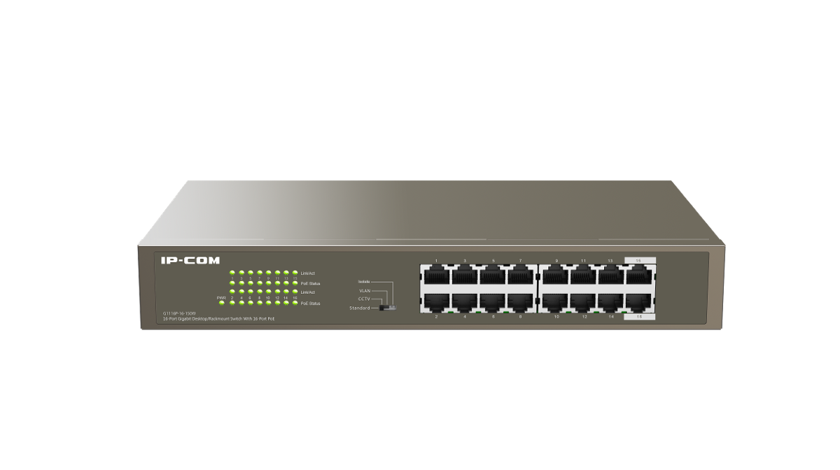 SWITCH (สวิตซ์) IP-COM G1116P-16-150W 16-Port Gigabit Desktop/Rackmount Switch With 16-Port PoE, Power Budget 135W (รับประกัน 3 ปี)