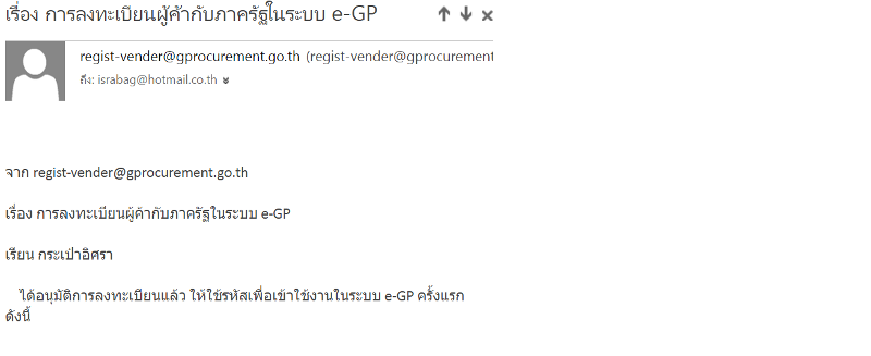 ได้รับแจ้งอนุมมัติการลงทะเบียนผู้ค้ากับภาครัฐในระบบ e-GP แล้ว