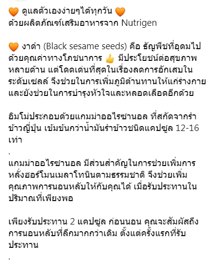 รายละเอียด: สารสกัดงาดำ น้ำมันรำข้าว เบต้ากลูแคน คิวเท็น