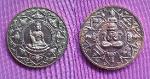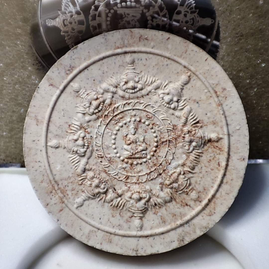 พระสวยไม่ได้ใช้เลย จมูกโด่งไม่มียุบ เหรียญมหาปราบ เนื้อตะกั่ว ขนาด 4 ซ.ม. พร้อมกล่องเดิม ราควัด 4,000 บาท ผมเช่ามาเองจากวัดและนำไปให้พระอาจารย์โชติท่านจารเพิ่มให้ ข้อมูลจากศิษย์ใกล้ชิดบอกว่าเป็นเนื้อที่มีมวลสารตะกรุดเก่า, เหรียญเก่า, และผสมหัวตะกั่วลูกปืน