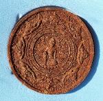 พระผงปิดตาพังพะกาฬ จตุคาม รามเทพ รุ่นสมบัติจักรพรรดิ์ ปี2549 เนื้อดำปัดบรอนซ์ทอง มีรอยกระเทาะ สภาพตามรูป มีโค๊ดมีเลขประจำพระ4654 ขนาดเส้นผ่านศูนย์กลาง 5 เซนติเมตร ไม่มีกล่องเดิมครับ