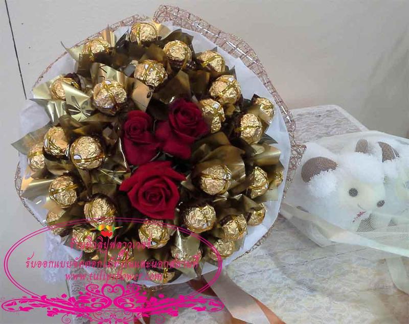 ช่อดอกไม้วาเลนไทน์ ช่อดอกไม้ซ็อกโกแลต ช่อดอกไม้เฟอร์เรโร่ ช่อดอกกุหลาบแดง ช่อดอกกุหลาบขาว